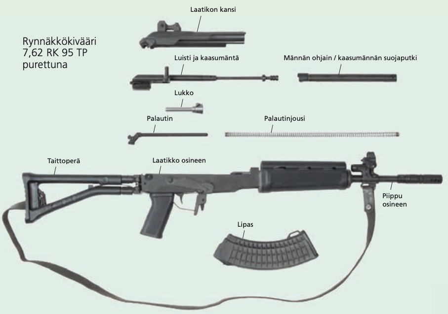 - (7.62) RK 95TP (TaittoPerä): taittoperä, suujarru, kiväärikranaattien ampuminen.
