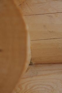 • Alhaalla kuvassa poskeamatta jäänyt hirsi on jättänyt salvokseen raon. Rako voi olla joskus merkittävästi suurempi!