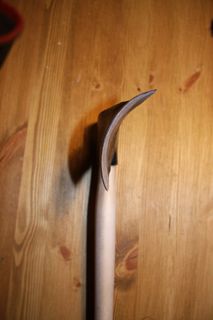 - Varren vaatimukset kuten kirveen varressa, mänty käy myös. Varren pituus riippuu käyttäjän pituudesta, terä mukaanlukien 105-125 cm. Terän puoleiseen päähän jätetään paksunnos käden suojaksi. Varren päähän tehdään litistetyn pallon muotoinen nuppi, läpimitaltaan 5 cm, varren keskiosa on 3 cm. Paksukaarnaista kuorta talvella kuorittaessa voi petkeleen painon lisääminen helpottaa. Varsitupen kiinnityspultin avulla liitetään terään rautaiset tai lyijyiset apupainot. Paras kädensuojus on nahkarukkanen.