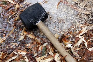 - Vuoleva hirsikaira, käsintehty tehokkain ja kevytkäyttöisin, rengaspäinen, sopiva halkaisija 38mm, vähintään 50 cm pitkä. Esim. hirsikaira syöttökierteellä + jatkovarsi + jääkairan vintilä + vintilän ylävarren jatke. Kuvissa käsin 2008 taottu kaira.