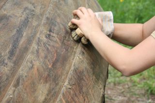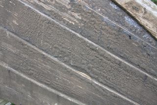 [muokkaa]- Raavi mekaanisesti raapparaudalla (taivutettu ja teroitettu lattarauta) pinnasta irti auringon kovettamat tervakokkareet
